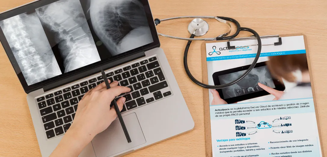 ActualPACS is a cloud-based service that securely stores medical images, and allows the sending of medical information from anywhere. It has been designed for institutions and doctors to improve the quality and productivity of medical diagnosis, which has a significant impact on better patient care. How can we help you? Contact us through our form or through our phone (+34) 964 199 495.
